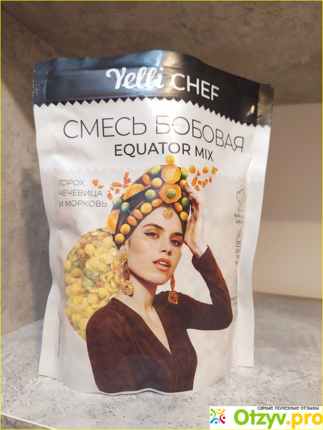 В маркете среди круп попалась на глаза упаковка смеси бобовая Equator mix Yelli Chef.