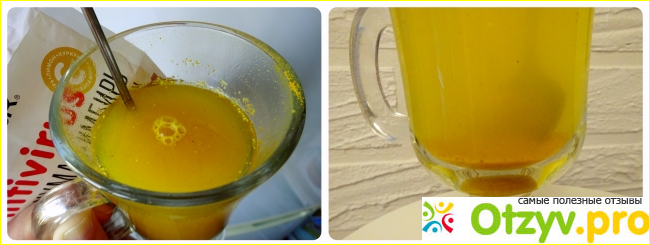 Напиток оранжевого цвета получается очень ароматным, вкусным и сладким. На фотографиях вы можете видеть, что смесь не растворяется до конца и оседает на дне. Несмотря на то, что при желании в готовый напиток можно дополнительно добавлять сахар, лимон, корицу, мяту и мед, считаю, что все эти компоненты при таком богатом составе будут лишними.
