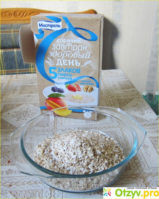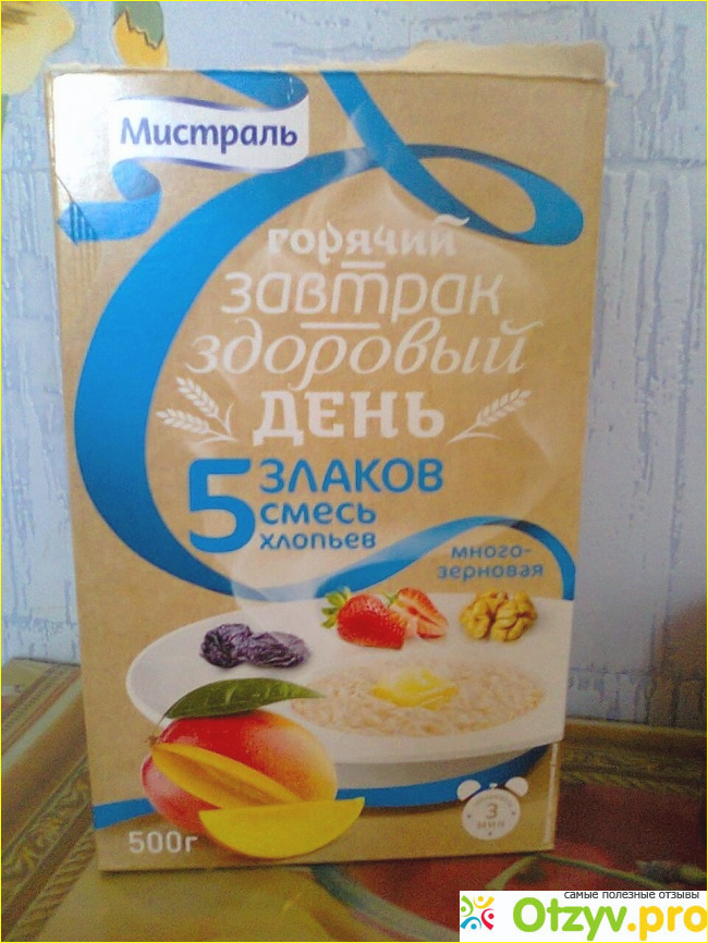 Но сейчас она в отъезде - отправилась в родные края, чтобы навестить детей и внуков. А мне-то чем-нибудь питаться ведь надо? Да, можно купить сосисок и есть их всю неделю с хлебом. Ну, и с помидорами-огурцами в лучшем случае. Однако, хотелось бы иметь разнообразие в своём питании, пока жены дома нет. Вот, я и отправился в соседний супермаркет "Пятёрочка". А там на одной из полок стояла одна единственная упаковка "Смесь хлопьев Мистраль 5 злаков". Конечно, я поторопился забрать её, пока никто не опередил. Но я ещё отлично помню, что супруга говорила - эти каши дороговаты для употребления в чистом виде и в целях экономии их можно смешивать с другими овсяными хлопьями. Я так и сделал - купил ещё одну коробочку, которая подешевле, но о ней речь пойдёт в другом моём рассказе.