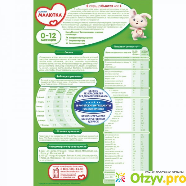 Смесь стоит недорого, почти тристо рублей, но найти ее в продаже не так и легко, мы обыскались, пока нашли точку, где ее постоянно продают, так что эта смесь немного дефицитная. Зато простую малютку купить можно в любом супермаркете в отделе детского питания, и у нас она аллергию не вызвала. Ребенок отлично набирал вес и не имел проблем с пищеварением.
