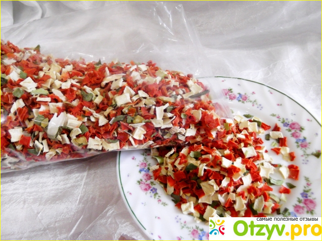Это отличная смесь из сушеной моркови, пастернака, капусты, лука.