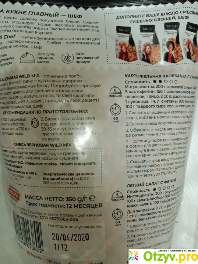 Всем привет! Хочу написать свой отзыв о новой для меня готовой зерновой смеси Wild mix Yelli Chef . В составе смеси различные крупы, такие как полба, крупа перловая, зеленая гречка и паприка. Я вообще любительница разных круп.
