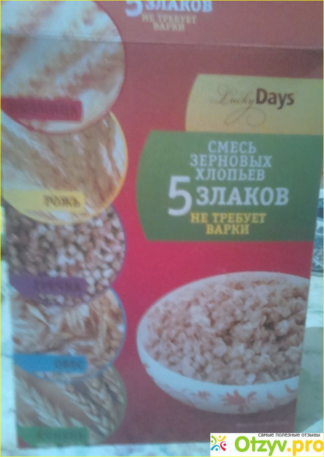 На сей раз мой отзыв о смеси зерновых хлопьев, состоящих из пяти злаков: