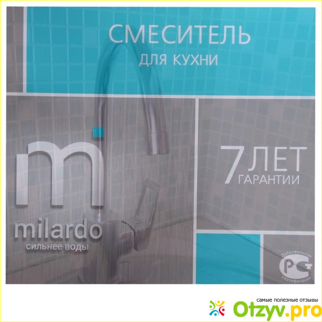Начну по порядку. Старый смеситель потек, поэтому возникла необходимость приобрести новый. Выбор пал на сантехническую устройство бренда milardo, потому что эта продукция прошла добровольную сертификацию, а гарантированный срок ее службы составляет 7 лет.