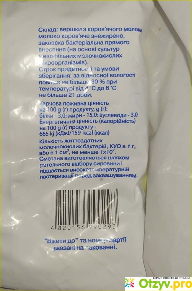 Сметана в мягком полиэтиленовом пакете. Вес 400 грамм.
