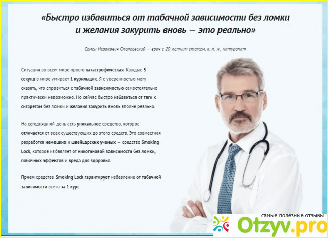 Smoking Lock — гарантирует стопроцентный отказ от курения на всю жизнь. Именно так рекламируется средство, помогающее бросить курить на официальном сайте Smoking Lock. Можно ли верить такой рекламе? На то она и реклама, чтобы преувеличивать эффективность рекламируемых средств.