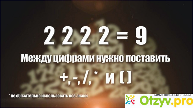 Некоторые любители подобного рода примеров, предпочитают усложнить условия тем, что нельзя объединять цифры, как в представленном примере. Тогда начинается поиск других вариантов.
