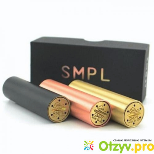 Мод Smpl был разработан для тех кто не любит большое количество заморочек и примочек для того чтобы повейпить. Если в крации, то мод Smpl это пожалуй самый простой из всевозможного разнообразия вейпов и модов для вейпинга. Конструкция Smpl довольно проста, в нем отсутствуют какие либо не нужные детали и вообще он создан без излишеств. Как раз для тех кто любит просто достать и покурить, не прибегая к всяким разным наработкам вроде температуры пара, насыщенности пара, и многим многим другим примочкам коими наделяют современные моды и вейперы.