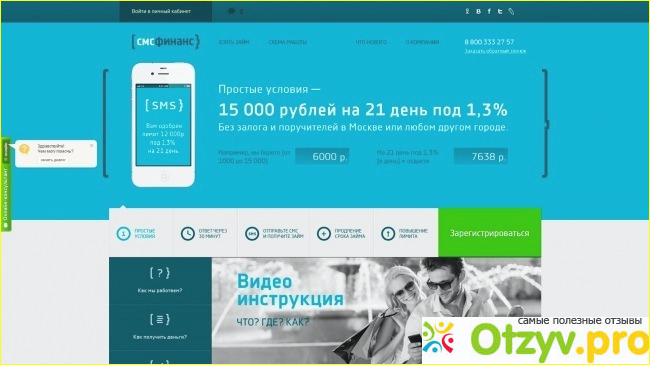 Тогда я решила попробовать взять микрозайм онлайн, ведь мне очень не хотелось напрягать родственников своими проблемами со здоровьем, и, уж тем более просить у них денег. Изучив множество сайтов микрофинансовых организаций, почитав отзывы, я всё же обратилась в одну компанию, которая показалась мне наиболее привлекательной – Смс финанс. Личный кабинет, да и сам интернет-ресурс у них выглядел просто и понятно, внушал доверие. На главной странице компании была указана вся необходимая клиентам информация, а именно: