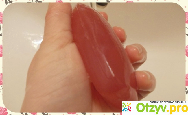 Сквозь нее виден сам кусок мыла яркого красного цвета.