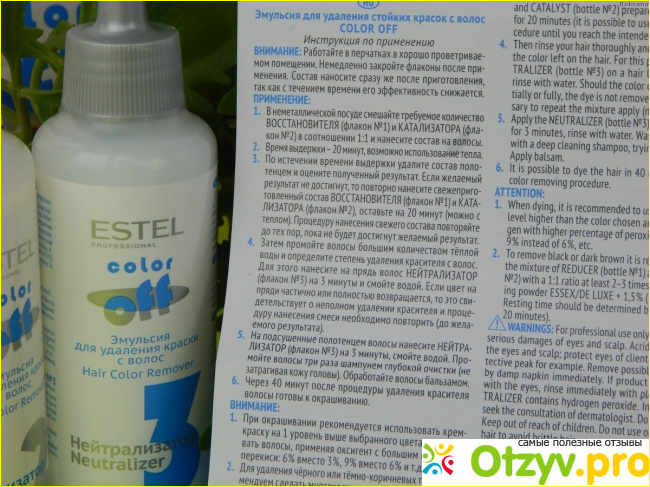 Средство Estel "Color Off" полностью способно заменить собой обесцвечивание, и даже смогло справиться с моим иссиня-черным. Эта смывка оказалось полностью безопасной и безвредной для моих волос. Я могу это с точностью утверждать, так как не почувствовала после процедуры смывки, что волосы ослабли или испортились. Густота, слава Богу, сохранилась, объем тоже. Но главное - это цвет! После одной процедуры очень хорошо вымылся черный пигмент. Но только через шесть процедур я полностью смогла вернуть свой родной темно русый оттенок! Мне теперь даже подумать страшно, чтобы я снова захотела его изменить)).
