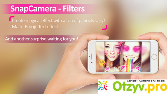 Так выглядит само приложение "Snap camera", чем-то фотоаппарат напоминает по структуре. Но у приложения "Snap camera", есть наследники. Например, приложение "Shap camera filters", оно очень популярно, так как там есть различные эффекты для селфи и портретной съемки. Это различные рожицы, сердечки, очки и прически. Можно представить себя с мордочкой кота или героем мультфильма. Скачали приложение более миллиона пользователей магазина "Google play", скачать приложение можно бесплатно! Приложение обновляли полгода назад, возрастное ограничение "3+", средняя оценка пользователей около 3,9. Думаю пользователей возмущает то, что нет обновления, хотя оно действительно нужно и в срочном порядке. Ниже я разместила картинку как выглядит данное приложение "наследник".