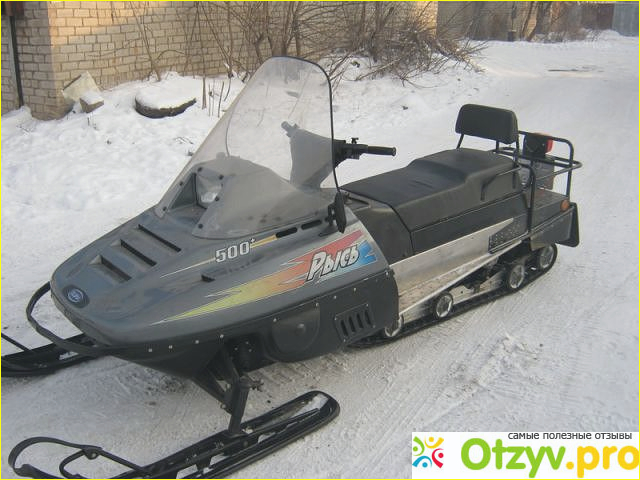 Благодаря широкой гусенице 510 мм и широко расставленным лыжам устойчив, как к боковому опрокидыванию, так и назад при подъеме в горку. Есть подогрев руля, но нет электрического стартера, в принципе ручной это дело привычки и не так критично. На озере, по насту разгонял свою Рысь 500 до 80 км/ч, при заявленной 90 км/ч, но по голому льду и наглухо укатанной сельской дороге, не превышал и 40 км/ч по причине заносов на поворотах и большого радиуса разворота. Двигатель карбюраторный, 40 сильный. Охлаждение воздушное, принудительное. Задняя подвеска солнечно шарнирная, но все равно он очень жесткий и в полной мере на себе ощущаешь все неровности.