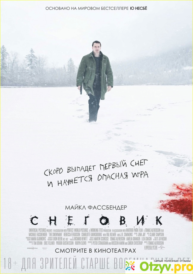 Многие не оценили данный фильм, оценки на кинопоиске не радуют и положительных характеристик не так много. Также люди сравнивают фильм с книгой, и конечно же фильм проигрывает в этой неравной битве. Я книгу не читала, да и не мой это формат литературы. Мне мистику и фантастику подавай, а для жести и крови лучше воспринимаю кинематограф. Хотя в фильмах ценю идею и сюжет, чем кровавые сцены. Из-за отсутствия динамичности и захватывающего сюжета фильму "Снеговик" ставлю 6 по 10 шкале, рекомендовать могу мужчинам для вечернего просмотра.