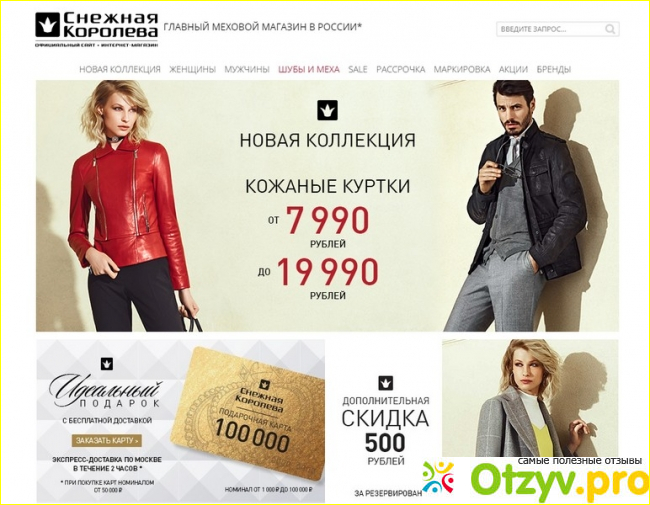 Про этот замечательный интернет-магазин я узнала прошлой осенью: мне хотелось подобрать себе новую кожаную курточку-жакет. Однако переплачивать несколько тысяч в обычной оффлайн-магазине не было ни желания, ни денег. Я, конечно, побаивалась покупать одежду через интернет, поэтому обратилась на форум за советом. Мне важно было знать, что, если мне что-то не подойдет, я без обмана смогла бы вернуть вещь и получить за нее деньги обратно. Одна из девушек на форуме и посоветовала мне заглянуть на сайт интернет-магазина Снежная королева. По ее словам, она как-то у них заказывала себе шубку. Прислали ей в итоге не ее размер. Так бы ее знакомство с этим магазином и закончилось бы, но продавцы оказались очень порядочными, предложили вернуть деньги или поменять на вещь ее размера, естественно со скидкой. В итоге она выбрала второй вариант и получила курточку своего размера, которая была на две тысячи дороже, чем та, за которую она заплатила в начале.