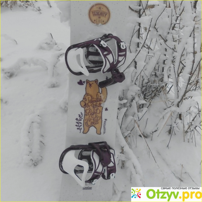 Для новичка-любителя данный сноуборд Wedze Serenity Evo c креплениями Expedite 2.0 идеальный вариант. Хочется отметить также его привлекательный внешний вид: с одной стороны борд молочного цвета с фиолетовым мишкой посередине, а с другой – полностью фиолетовый с надписью фирмы Wedze. Если это женский вариант, то есть еще и в мужском стиле – в темном цвете с другим рисунком.