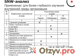 Обобщение результатов анализа: SNW и SWOT | Обобщающий стратегический анализ | Snw-подход к анализу внутренних ресурсов | Дар №3 SNW подход к анализу внутренних | Основы менеджмента. PEST-анализ |