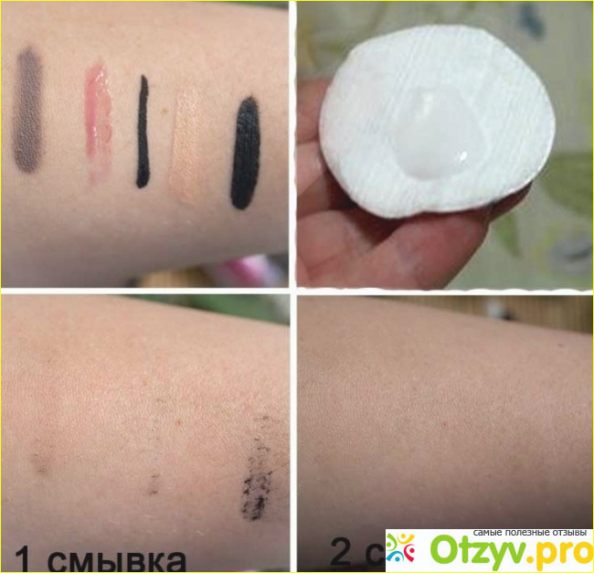 Для снятия макияжа, нужно нанести средство на ватный диск и круговыми движениями снять макияж с глаз.