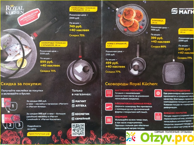Например, за блинную сковороду необходимо доплатить 399 рублей плюс 40 наклеек.