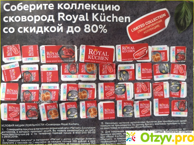 Количество наклеек- 40 штук и ваша мечта сбылась- Вы можете приобрести заветную сковородку, правда доплатить нужно.