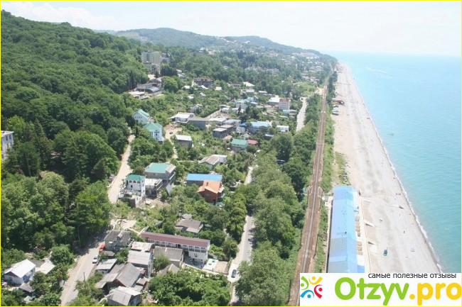 Начну с плюсов. Самое главные — это море, воздух, горы и лес. Воздух здесь изумительный, я не могу надышаться. Кругом красивые горы и много растительности. Море здесь самое чистое из всех сочинских районов. Отдыхающих на море меньше, чем в Сочи и Адлере. А развлечений, как и везде, всем хватит. На море бананы, катамараны прогулки на катерах, водные мотоциклы, полет на парашюте и прочее. Много экскурсий. Мы ездили на 33 водопада, очень понравилось. И брали конную прогулку в ущелье ведьм на 3 часа по горам. Это было незабываемо — общение с лошадьми, горы, воздух, природа, купание в озере любви.