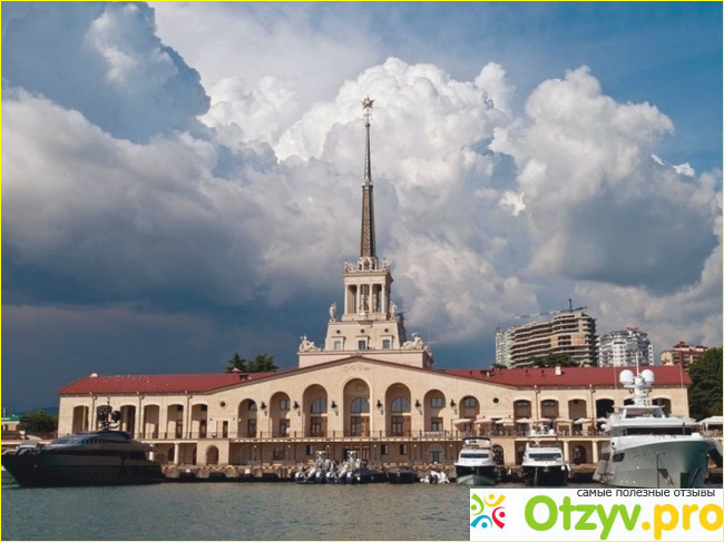 Еще одним главным объектом Сочи, является Морской вокзал Сочи. Это достаточно большой порт России. Именно в Сочи открыты главные морские пути с прилегающими странами Турция, Грузия и территорией Абхазии. Морской вокзал расположен в центре города, от него идет пешеходная дорожка вдоль побережья Черного моря. Морской порт Сочи - это исторический объект города.