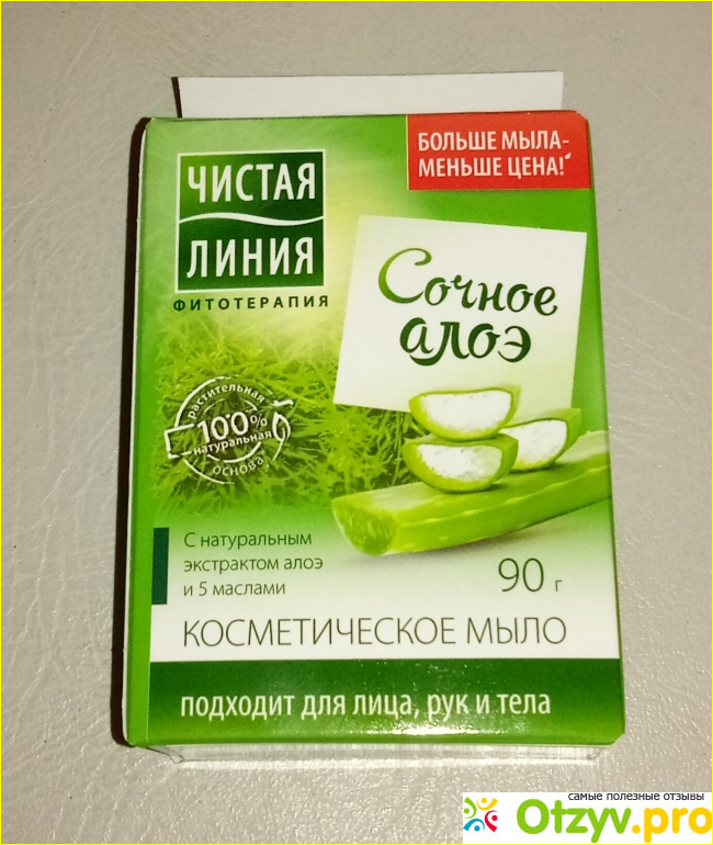 С января тестирую мыло Чистая линия Сочное алоэ. Мыло упаковано в милую коробочку в зеленых тонах.
