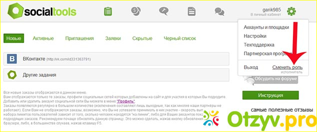 Итак, зарегистрировавшись и указав свои интересы, подтвердив электронную почту, мы попадаем в свой личный кабинет, где первым делом указываем свои социальные сети и подтверждаем их. Собственно от них и будет многие задания. Для этого не обязательно указывать свои странички, для этого я создала "левые", сделала их более-менее живыми и начала через них работать.Итак, где искать задания, я указала красным цветом. Сначала мы нажимаем на значок вверху и после чего раскрываются социальные сети, далее нажимаем на каждую из них и выбираем понравившиеся задания. Сразу хочу предупредить, что заданий не очень много, а вот желающих подзаработать очень много и задания "воруют"очень быстро.