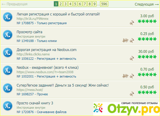 (от 20 сек до минуты), после окончания времени - капча типа 5+3 и кнопки ответа от одного до 8. Щелкаем ответ.. Всё. Ваши 4 копейки Вы заработали. Переходите к следующему. Практика показывает, что много на этом занятии Вы не заработаете, ну, может, рубль - другой в сутки. Примерно то же самое и чтение писем и тесты. Я не буду подробно описывать, они отличаются незначительно от кликов, и стоят только чуть подороже. Разберётесь легко. Самое доходное на сайте - выполнение заданий. Там оплата бывает выше, от десятков копеек до десятков рублей за задание. Но не спешите растопыривать карман. Обычно дорогие задания бывают связаны и с большим объёмом работы. Например, с регистрацией на каком то сайте, как правило, тоже лохотроне, и чтобы получить свои 30 рублей, Вам придется сделать там сотни полторы кликов. Точно так же, как и на Сео. Потом сдать отчет, приложив скрин-шот с сайта, что не обманываете, и честно тыкали на сайте в кнопки две недели. Легче- задания ценой около рубля. Их то уже можно рекомендовать. Там достаточно просто зарегистрироваться на каком-то сайте, вступить в группу в контакте или одноклассниках, (рекомендую завести фальшивую страницу с чужой фотографией, чтобы не позориться перед друзьями), или проголосовать за конкретную красавицу на онлайн конкурсе красоты. Пример заданий: