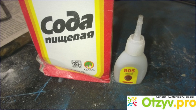 Получилось так, что искали одно, а нашли другое применение. В качестве клея. Сода, в этом случае выполняет роль наполнителя, и создает дополнительный клеящий эффект. Причем практически мгновенно.