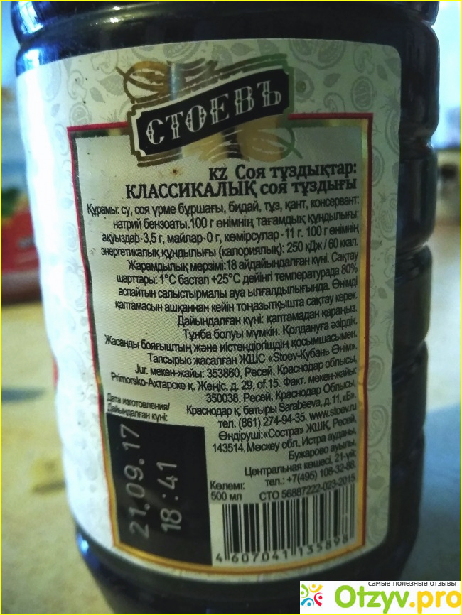 Состав прописан крупно и понятно, на фото он есть. В основе соевые бобы и пшеница. Без консерванта, конечно, тоже никуда. Больше месяца уже прошло с покупки. Я этот соус уже доедаю. И просто со спагетти, и мясо с ним тушила и в духовке курицу пекла. Отличный соус, брать можно.