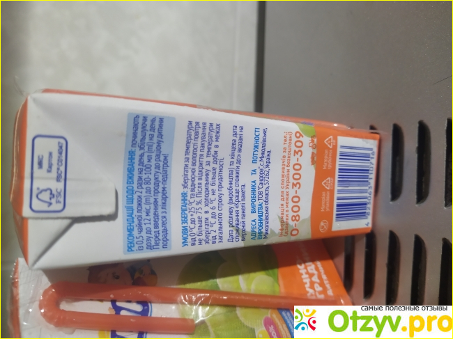 Сок разрешён для деток от шести месяцев. Сок не содержит сахара и красителей, что очень хорошо для употребления деткам. Сок действительно очень вкусный, есть сбоку инструкция по применению для молодых мам, в которой рассказано, как правильно знакомить малыша впервые с продуктом