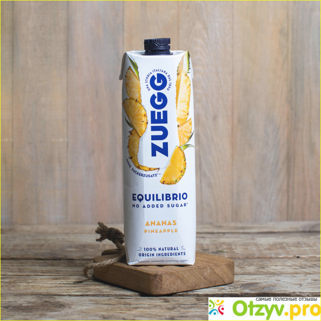 Вкус ананасов я знаю отлично. Несколько раз в поездках пробовал их свежайшими, а не из железной консервной банки у нас. Так вот, когда я попробовал сок Zuegg из ананаса, я решил, что теперь буду покупать только его (если интересует вкус ананаса). Этот сок похож по вкусу на настоящий ананас. Это неудивительно, ведь в его составе только ананасовый сок, натуральные ароматизаторы и вода, а главное, что нет сахара. Кстати, сам ананас, неразбавленный (по мне) как бы, довольно едкий. Поэтому разбавлять водой его хочется изначально, но от этого натуральность не пропадает.