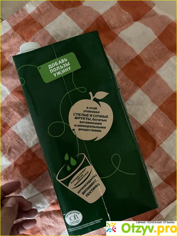 Пить очень хотелось еще по дороге домой, поэтому проба мной была снята еще в пути. Я осталась очень довольна. В меру сладкий и очень приятная бархатная текстура сока. А яблоко делает вкус не приторно сладким. Перед тем как пить упаковку я немного взболтала.