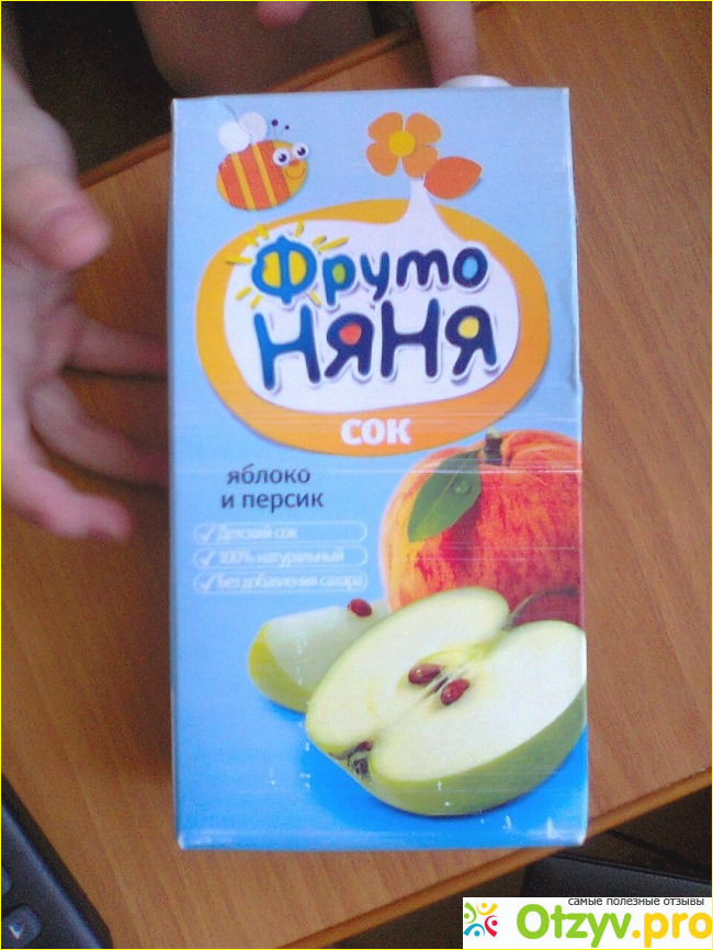 Упаковка сока выглядит симпатично, голубенький цвет оформления, нарисованы пчелки, цветочки, в общем видно, что оформление детское у сока. А какие аппетитные яблочки и персики нарисованы, очень хорошее оформление у сока. Пачка довольно-таки прочная, не повреждается даже при падениях и хорошо сохраняет сок от пыли и микробов.