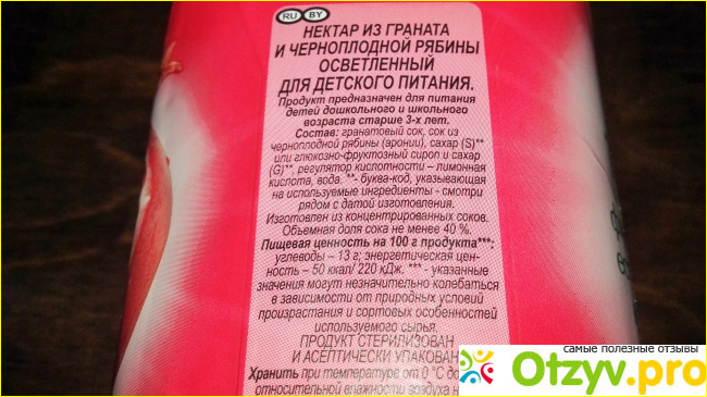 Оно вроде гранатовое, но в реальности это даже не концентрат. Возможно тут было что-то натуральное, но это явно не тропический фрукт. Зато в составе честно указано наличие рябинового сока. На вкус оно действительно представляет собой сто процентный морс из рябины!