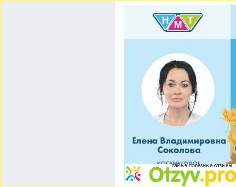 Всем доброго времени суток. Хочу написать отзыв про косметолога - Соколову Елену Владимировну, которая принимает в клинике НМТ-технологии в Курске по адресу: улица Ленина, дом 90/2 ( фактически это получается улица Гоголя). Была на приеме конкретно у этого врача первый раз.