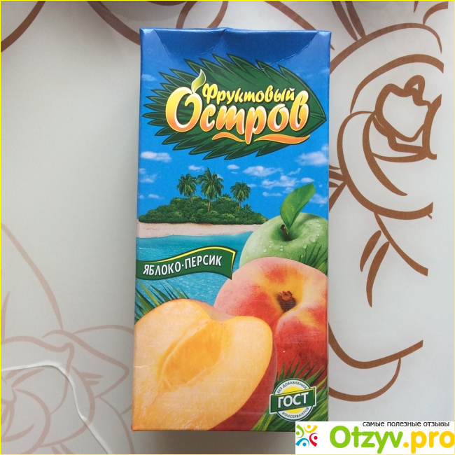 Данный сок представляет из себя смесь персика и яблока, что на мой взгляд является одним из самых распространённых вариантов. Такое сочетание нравится многим за интересные вкусовые качества. Напиток имеет светло – жёлтый оттенок, характерный при смешивании двух этих фруктов. Сахара в данном сокосодержащем напитке достаточное количество, он совершенно не приторный, пьётся очень приятно. Его вполне можно давать даже маленьким детям от трёх лет.