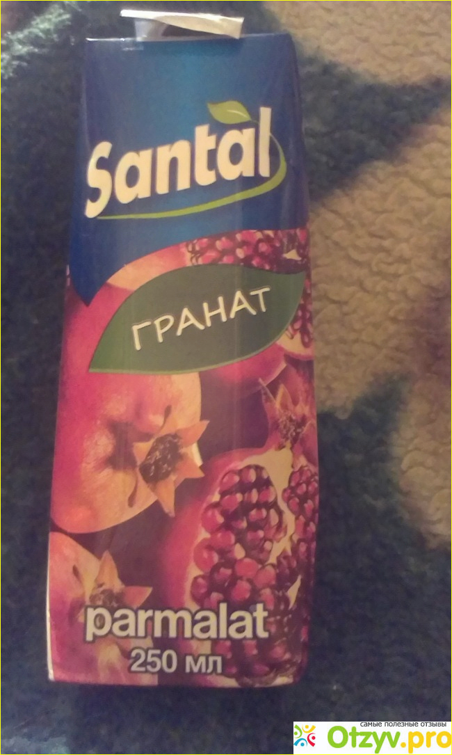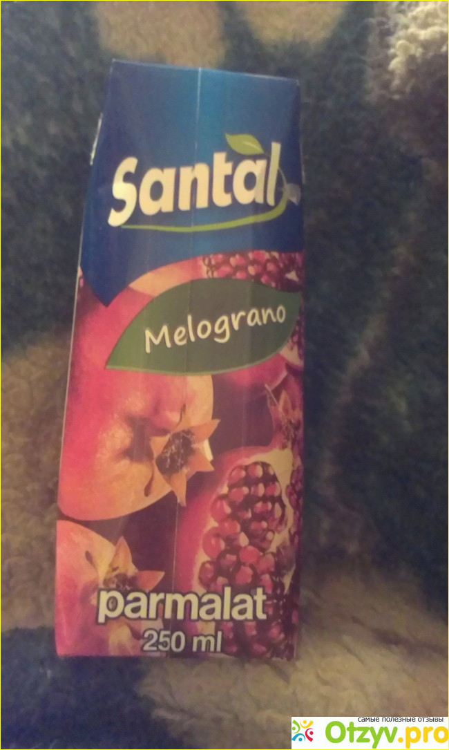 Увидев в магазине коробочку с изображением сочных гранатов, не удержалась от приобритения. Дома только разглядела, что же я схватила на самом деле. Оказалось, что это не гранатовый сок, а всего лишь сокосодержащий напиток из граната " Сантал" осветленный.