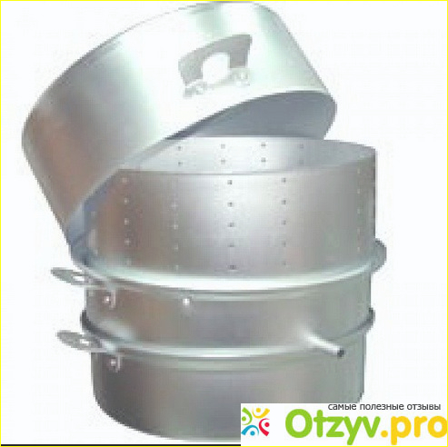 Первое, что здесь имеется, - это нижняя кастрюля, которая является невысокой и имеет в тоже время большую ширину, куда наливается вода. Если есть в этом необходимость, то данную ёмкость можно использовать как кастрюлю, особенно с учетом того фактора, что сюда подходит нормально крышка, которая идёт по стандартной комплектации.