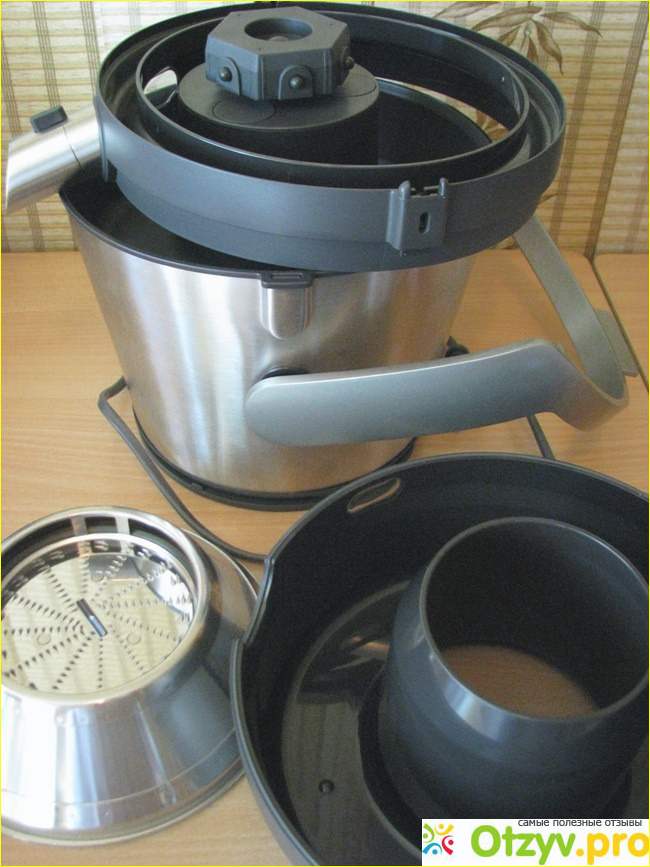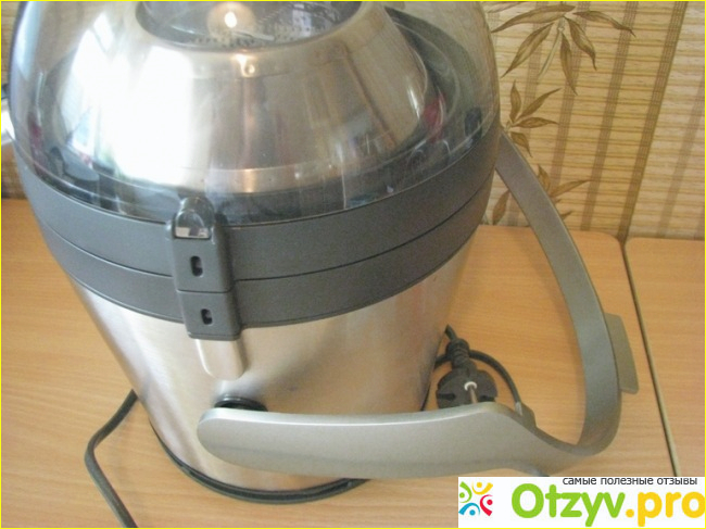 Соковыжималка достаточно компактная и удобная для подобного агрегата, оснащена защитной функцией, сохраняющей от перегревания во время больших нагрузок, в таком случае происходит автоматическое отключение соковыжималки. Также соковыжималка не включится, если ее детали установлены неправильно, а фиксатор не заблокирован.