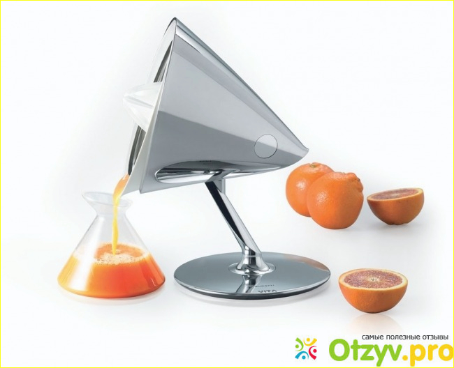 Разработана соковыжималка в Италии. Изготовлена из глянцевого пластика. Электрическая соковыжималка активируется с легким давлением на конус сока. Обладает фильтром для сока из нержавеющей стали, который выделяет целлюлозу и семена перед тем, как сок переходит в контейнер для соков. Включает в себя небольшой конус для сока для небольших цитрусовых фруктов (в комплекте с скребковым лезвием на основе для извлечения большего количества сока из целлюлозы) и крупным конусом сока, который находится сверху. Крышка не дает попадать мусору сверху и из внутренних частей, когда соковыжималка не используется. Есть кнопка блокировки замка, которая находится на стороне и наклоняет верхний конус сока, позволяет быстро и легко вылить сок из соковой емкости.