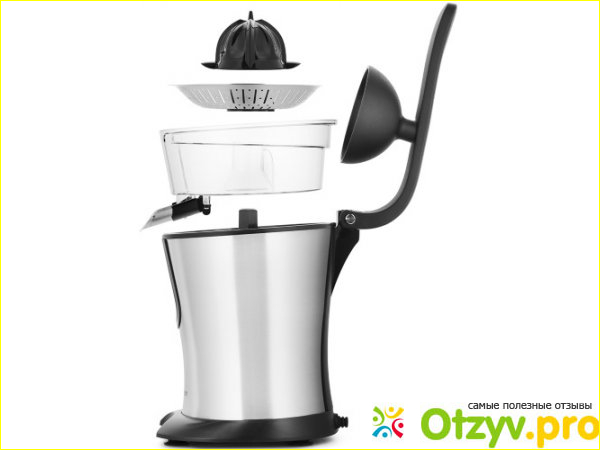 В этой модели также предусмотрена емкость для мякоти. Объем резервуара не большой, но и этого вполне достаточно. Объем емкости составляет 0,75 литров. Если говорить в общем о данной модели, то она за свою стоимость вполне хорошая. Но единственное не совсем удобно и практично является то, что использовать ее можно исключительно для цитрусовых. А ведь не всегда мы готовит соки только из этих плодов.