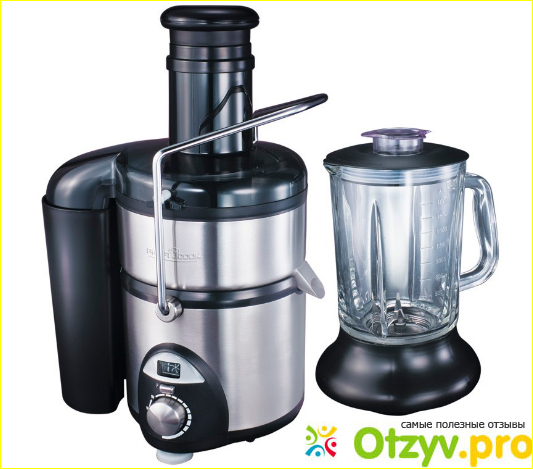 Нож в этом блендере сделан из высококачественной стали. Есть системы защиты: если нет ёмкости для сока, то работа с прибором будет невозможна.