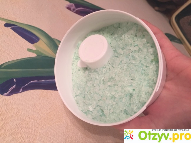 Хочу еще добавить что когда соль раствориться в теплой воде, выделяется приятный мятный аромат, а вода становится нежно голубого цвета и делается мягче по ощущениям.