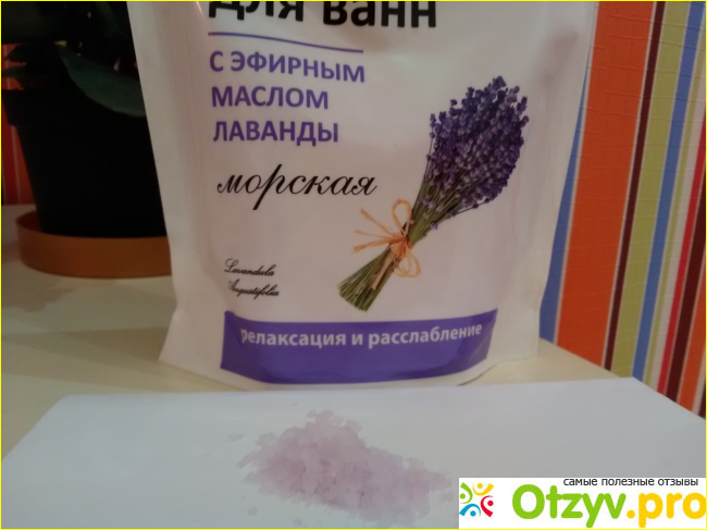 Косметическое средство приятно ароматизирует воздух, когда некоторое количество соли высыпается в воду. Не знаю, как пахнет лаванда, но запах приятный. Крупинки достаточно крупные, в ванной могут раствориться не полностью.
