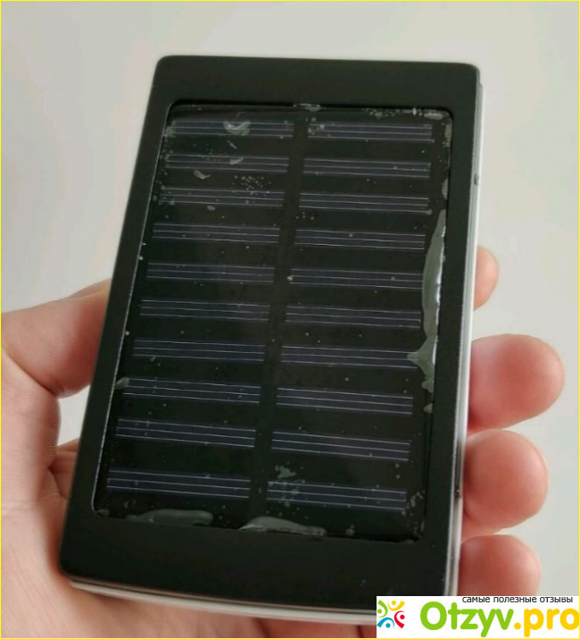 Выглядит устройство довольно дешёвым, особенно это касается качества пластика. Ни о каких 20000 мА*ч и речи быть не может. После полной зарядки от сети хватает только, чтобы полтора раза зарядить смартфон ёмкостью аккумулятора 4000 мА*ч. И то только, если смартфон разряжен не полностью и остаётся ещё процентов 20-30. Одним словом, это простой, недорогой Рower bank, у которого большие показатель ёмкости написаны ради рекламы. В общем, сплошной обман. Аккумулятор здесь максимум на 5-6 тысяч мА*ч. От солнечной батареи такого маленького размера проку абсолютно нет. Летом на даче они проверяли и пытались его заряжать на солнце весь день. Вследствие чего он смог зарядиться только процентов на 5-8. Так что возможностей солнечной панели хватит, чтобы совершить только экстренный звонок, или подзарядить фонарик, которого также хватит ненадолго. Последний кстати, постоянно глючит и включается только после интенсивного встряхивания. Так что чудес от дешёвых устройств не бывает. Все красивые цифры и солнечная панель — только ради громкой рекламы, чтобы раскупали побыстрее. Поэтому мой вам совет — не вестись при низкой цене на громкие заявления! Лучше приобрести обычный Рower bank большой ёмкости от известного производителя. Для солнечных панелей очень важен размер, чтобы на неё поступало как можно больше солнечного света. Поэтому, если вы любитель отправиться в места где меньше людей и нет электричества, то максимум на что стоит обратить внимание, так это на портативные аккумуляторы, которые могут заряжаться от рулонных или складных солнечных батарей. Кстати, именно такие комплекты стали всё чаще появляться на рынке. От портативных аккумуляторов, на которые нанесена маленькая солнечная батарейка — практичного толку нет.