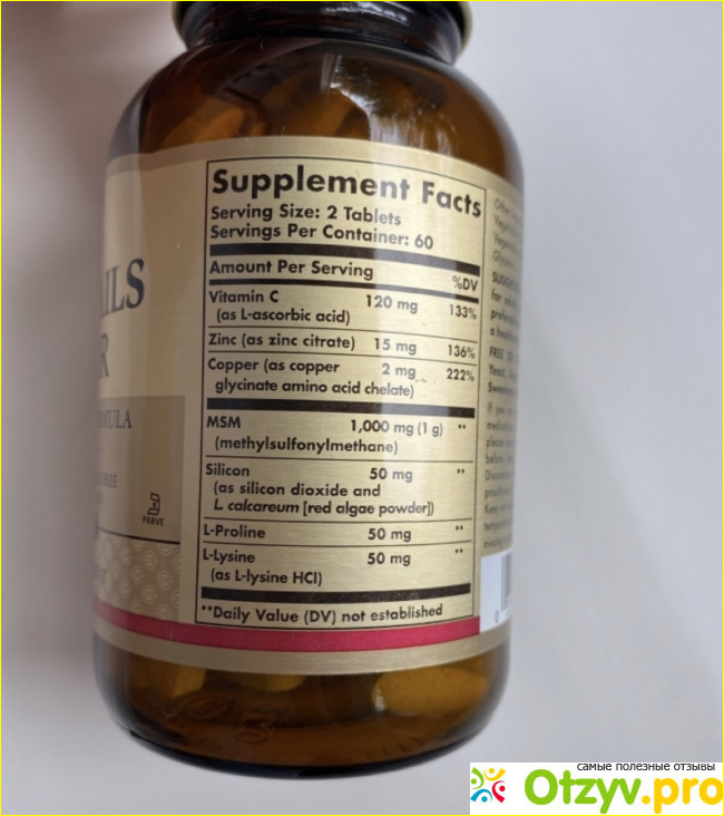 Я занялась поиском подходящего комплекса и нашла витамины Solgar "Для волос, кожи и ногтей", как раз это я и искала. Стоимость их ввела меня в шок, за 60 таблеток я заплатила 1400 рублей, это несомненно дорого и я это осознаю, но всё равно купила, а куда деваться. Я прочитала состав и меня он больше чем устроил, лучшего я просто не нашла.