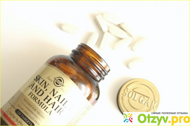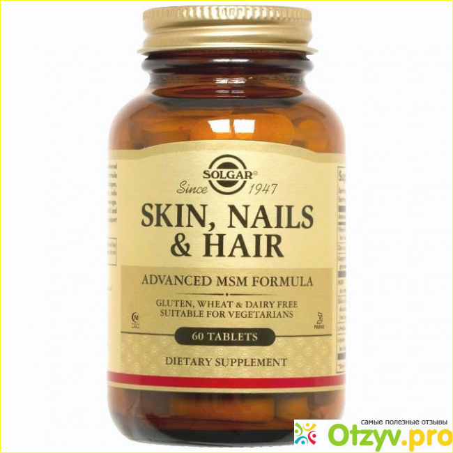 В состав этого комплекса входят полезные и сбалансированные микроэлементы, причём каждый из них играет в жизни человека свою определённую роль, а соединяясь между собой, они и дают хороший усиленный эффект. О существовании этого комплекса, я узнала практически после родов, когда в результате проведения кесерового сечения, пройденного курса антибиотикотерапии, у меня начались проблемы с кожей, она стала сухой, волосами, которые выпадали и ногти просто слоились. Естественно я хоть и находилась в декрете и была занята малышом, всё же хотелось выглядеть женственной, а не какой то там замухрышкой. Когда же я всё-таки взялась за себя, то и стала искать подходящие витамины, так как понимала, что именно в них я и нуждаюсь. В общем понимала я одно, что мне нужен целый комплекс, так как было сразу несколько неприятных проявлений. Искала я подходящие витамины в интернета, исходя исключительно из положительных отзывов, которые были в сторону Solgar vitamin and herb hair skin and nails. Кроме того, что они мне подходили в качестве комплексного воздействия на отдельные части моего организма, так они благоприятно влияют полностью и на весь организм. После покупки, я стала их рассматривать, так как находятся они в обычной стеклянной баночке из тёмного стекла, всего их штук 60, бывает и по 120 штук, но я брала меньше, чтобы не выбросить деньги на ветер. На самой баночке имеется этикетка, на которой находится информация, но написана она не на русском языке, благо у меня был вкладыш, где информация была на понятном мне языке.