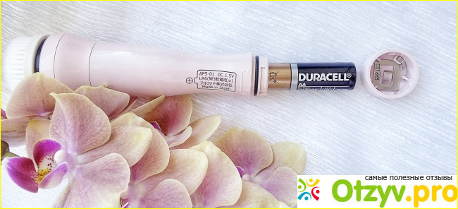 Щетинки там оказались очень нежными и мягкими и они совершенно не царапают лицо. Также меня порадовало качество сборки этого прибора и высокопрочный пластик. Уже не раз, щеточка выскальзывала у меня из рук и ударялась о кафельный пол, ванну и раковину и ничегошеньки с ней не случилось. Благодаря своему компактному размеру, она не занимает много места на полке. К тому же, у нее есть специальная резиночка, за которую ее можно и подвесить на крючок в ванной. При включении щетка довольно интенсивно вибрирует, но не очень шумно. Работает щетка от одной пальчиковой батарейки AA, правда она не идет в комплекте с щеткой. Поэтому ее нужно приобрести отдельно.